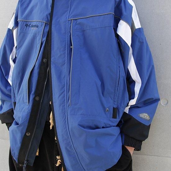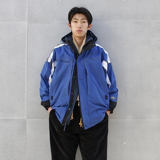 2000年代 コロンビアバーテックス/3イン1インターチェンジジャケット コロンビアが86年にリリースした"バガブー"が元祖の3イン1インターチェンジジャケット、シェルと着脱可能なライナーによりシェルxライナー、シェル単体、ライナー単体と3通りの着方が選べる3イン1ジャケット。 こちらはコロンビアの上位ライン"Vartex/バーテックス"ラインからリリースされた3イン1。 シェルはコロンビア独自の防風、撥水、透湿性に優れた”オムニシールド”シェルを採用、ライナーは単体でも着れるデザイン性が魅力のフリースジャケット。 コロンビアと侮るなかれのデザイン、機能性共に優れたハイクオリティーなジャケット。 ブルーベースの80-90年代のモデルにはあまり見られなかった配色と切替でアウトドアはもちろん街着としても着やすいデザイン。 単体のデザイン、機能的にも優れたジャケットとフリースジャケットがセットで正直お買い得です◎ コンディション:ユーズド/特に目立つダメージ無し (シェル) カラー:ブルー 表地:ナイロン 腰上裏地:ポリエステル メッシュ 袖裏・腰下裏地:ナイロン 着脱式フード、フード・ウェスト・裾にドローコード、袖先ベルクロアジャスター フロントダブルジップ、両胸下ジップポケットx2、内ポケットx1、脇下ジップベンチレーション (ライナー) カラー:ネイビー 素材:ポリエステルフリース 腰ジップポケット、裾ドローコード、内ポケットx2 表記サイズ:L 胸囲 134cm/背丈 78cm/ゆき丈 92cm 着用モデル身長:179cm その他のコロンビアの商品はこちらから