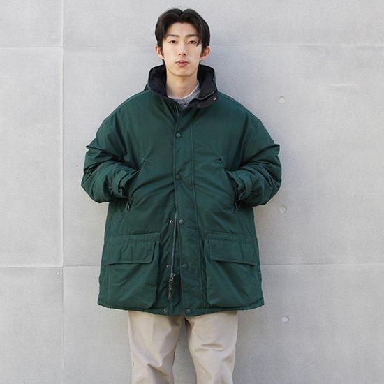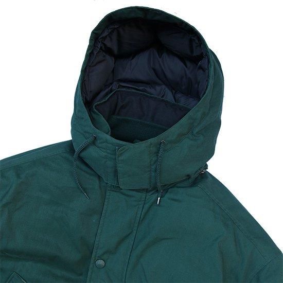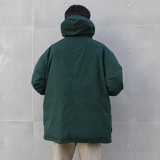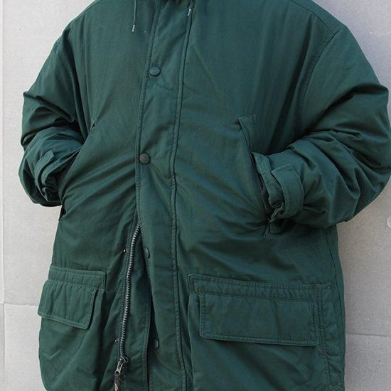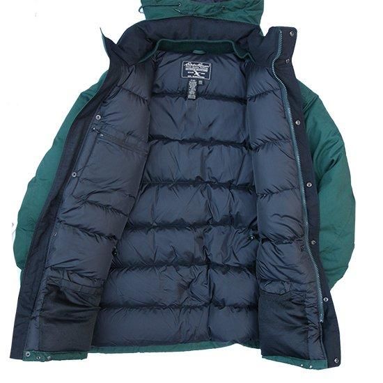 2000年代 エディーバウアー/グースダウンパーカ アメリカ軍やエベレスト登頂隊などでの納入/使用実績を持つエディーバウアーのダウンウェアは中綿にフェザーは使わず、ふかふかで軽く高い保温性を持つグースダウン100%。 厳しい寒さで知られる地元ワシントン州を中心に絶大な人気を持ち、細かな仕様変更を繰り返しながら長くリリースされ続けていたロングセラーモデル。 シェルに防風、撥水、耐久性の高いポリコットンシェルx中綿グースダウンの当時の防寒、保温性に優れたモデル。 フロントと内側合わせて11室のポケットを装備。 表地:ポリエステル65%xコットン35% 裏地:ナイロン 中綿:グースダウン 着脱式フード・ウェストにドローコード、ダブルジップ、袖先ベルクロアジャスターx内側リブカフ フロントフラップ裏にジップポケット、胸下ハの字ジップポケット、腰2口ポケット、内ポケットx4室 カラー:グリーン コンディション:ユーズド *裾ドローコード欠損 表記サイズ:L 胸囲 140cm/背丈 88cm/肩幅 63cm/袖丈 60cm 着用モデル身長:179cm その他のエディーバウアー/ダウンはこちらから