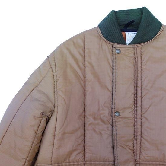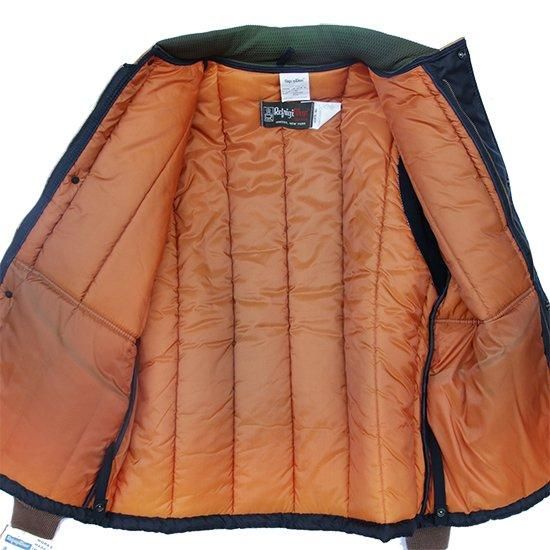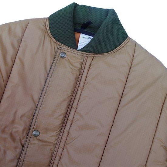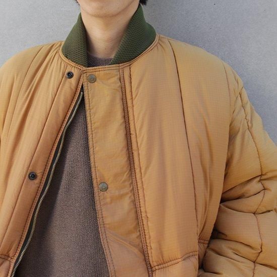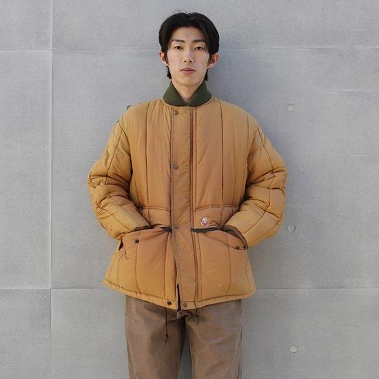 1990年代 デッドストック リフリッジウェア/キルティングワークジャケット 冷凍庫内から寒冷地等の極寒環境での作業着に特化したアメリカのワークブランド"リフリッジウェア"の防寒、保温性に優れたキルティングジャケット。 オールドモデルをデッドストックで発掘、全体に灼けによる色ムラありますが、それもまたワークウェアらしく良い雰囲気かと。 耐久性に優れたナイロンリップストップの縦キルティングシェルに保温性の高いポリエステルの中綿。 アメリカ製 表地:ナイロンリップストップ 裏地:ナイロン 中綿:ポリエステル フロントジップxスナップボタン、腰ポケット、裾ドローコード カラー:マスタード コンディション:デッドストック(新品) *デッドですが全体に灼けによる変色、色ムラあり 表記サイズ:L 胸囲 126cm/背丈 72cm/肩幅 54cm/袖丈 65cm 着用モデル身長:179cm その他のキルティングジャケットはこちらから