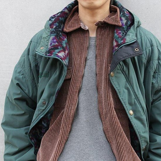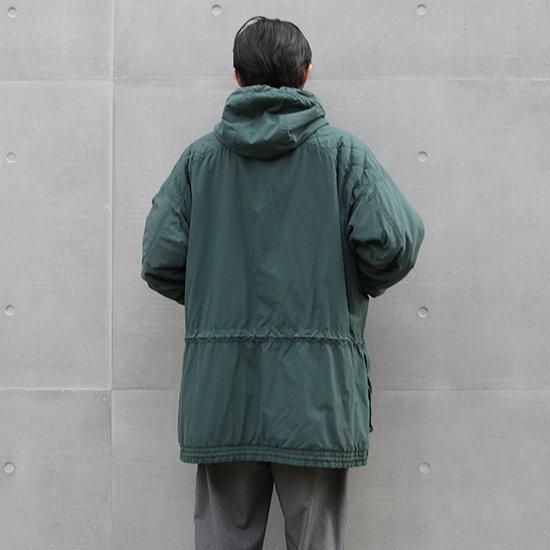 1995年製 コロンビアスポーツウェア/フリースラインドマウンテンパーカ 95年リリースのオールドコロンビアのマウンテンパーカ。 表はナイロンx裏フリースで袖と腰下に中綿入りの仕様はナイロンの撥水、防風性とフリースと中綿の軽量で高い保温性を一体にしたレイヤード入らずの1枚完結型ジャケット。 裏地のフリースの柄もコロンビアオリジナルで◎ 表地:ナイロン 裏地(腰上):ポリエステルフリース 裏地(腰下)・袖裏:ナイロン 中綿:ポリエステル フロントダブルジップ、フード・ウエスト・裾にドローコード、袖先ベルクロアジャスター 内ポケットx1、胸下にハノ字ジップポケット、腰にフラップ付き2口ポケット カラー:グリーン コンディション:ユーズド/特に目立つ様なダメージ無し 表記サイズ:表記無し/実寸XLサイズ 胸囲 148cm/背丈 89cm/ゆき丈 99cm 着用モデル身長:179cm その他のコロンビアのアイテムはこちらから