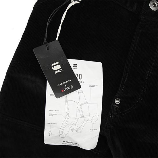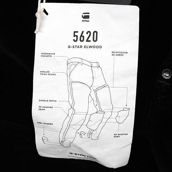 2000s Deadstock G-Star Raw/"5620 3D Slim" Corduroy Pants 2000年代 ジースターロウ/コーデュロイパンツ 1996年に発表された世界初の3DデニムでG-Starの代名詞とも言える5620、通称“Elwood"。 こちらはMacy's別注のブラックコーデュロイバージョン。 膝の部分が継ぎ接ぎしているように見えるのが特徴的な一本。この立体裁断が抜群のフィット感と美しいシルエットを作り出してくれます。 素材:コットンコーデュロイ ローライズ、ボタンフライ、5ポケット カラー:ブラック コンディション:デッドストック(新品) 表記サイズ:W32 実寸サイズ:W33xL30 ウエスト 84cm/股上 25cm/ワタリ 28cm/レングス 76cm/裾幅 16cm/総丈 98cm
