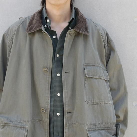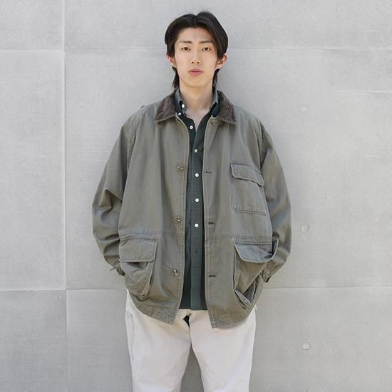 1990年代 エディーバウアー/フィールドコート 90年代オールドバウアーのカバーオール的ムードも持ち合わせたフィールドコート。 タフで着込むほどに味わいを増すコットンサテン地を採用。 表記Mサイズですが実寸はXL相当、全体にゆとりあるオーバーサイズフィット。 本来着脱できるライナーが付くモデルですが、ライナーは欠損しております。 表地:コットンサテン 裏地:コットンフランネル 袖裏:ナイロン 襟コーデュロイ、左胸ポケット、腰2口ポケット カラー:オリーブ コンディション:ユーズド *ライナー欠損 *左袖上腕にシミ汚れあり 表記サイズ:M 胸囲 138cm/背丈 83cm/肩幅 55cm/袖丈 63cm 着用モデル身長:179cm その他のエディーバウアーのアイテムはこちら