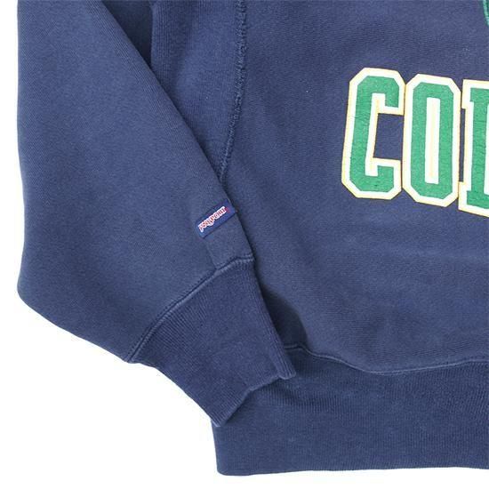 1990年代 ジャンスポーツ/クルースウェット アメリカ製 アメリカはマサチューセッツ州にある"エルムズ大学"のクルースウェット。 ボディはジャンスポーツのヘビーウェイトスウェットを使ったリバースタイプ。 素材:コットン 95%xポリエステル 5% カラー:ネイビー コンディション:ユーズド *背中裾リブ右に3mmほどの小穴あり 表記サイズ:L 胸囲 125cm/背丈 71cm/肩幅 53cm/袖丈 66cm 着用モデル身長:179cm その他のチャンピオンの商品はこちらから
