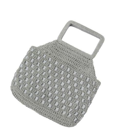 ハンドバッグ ストローバッグのような編みの、爽やかで軽やかな夏に似合うハンドバッグ。 素材:レーヨン100% 内ポケットx1 カラー:シルバーグレー サイズ(ハンドルを除く):高さ 21cm x 幅 24cm x 底マチなし コンディション:ユーズド <その他のアクセサリーはこちら>