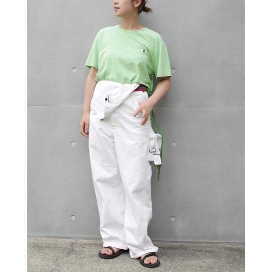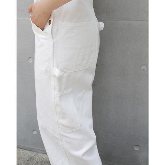 1990-00年代 カーハート/デニムビブオーバーオール フロントポケットの形が珍しい、デニム生地のオーバーオール。爽やかなホワイト🎶オーバーオールはいつものパンツの2インチアップくらいで着るのがおすすめです。 素材:表記無し(コットンツイルデニム) カラー:ホワイト コンディション:ユーズド *ハンマーループ付近にスレ、穴 *所々に小さな汚れ 表記サイズ:W30xL34 実寸サイズ:W30xL27 A ウエスト 78cm(39cmx2) B 前股上 36cm C ワタリ 31cm D 腰〜裾 99cm E 裾幅 24cm F 股下 68cm 着用モデル身長:156cm <コーディネートで使用したアイテム> *LOS ANGELES APPAREL タンク <その他のパンツはこちら>