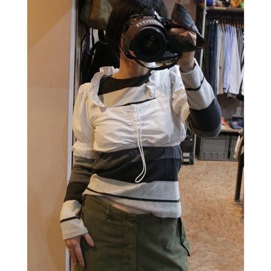 2000年代 Wolper Oinger/クロップドブラウス メンズライクなファッションにエッセンス的に取り入れたい、クロップドブラウス。Tシャツやキャミソール、ロンTに合わせて、ボトムはスカートよりパンツスタイルがおすすめ。バギーなデニムショーツやミリタリー物との相性も抜群です。 素材:コットン カラー:ホワイト コンディション:ユーズド 表記サイズ:32 (実寸 Women's S) 胸囲 82cm/背丈 30cm/肩幅 35cm/袖丈 28cm 着用モデル身長:156cm <その他のTシャツはこちら>