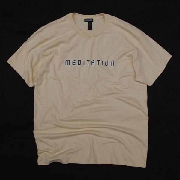 Jamal/Meditation Tee ジャマル/グラフィックTシャツ ”メディテーション" 素材:コットン 100% (6オンスジャージー/ギルダン) カラー:ベガスゴールド シルクスクリーンプリントによるグラフィック モデル身長:179cm/Lサイズを着用 サイズ M 胸囲 100cm/背丈 71cm/肩幅 45.5cm/袖丈 17cm L 胸囲 112cm/背丈 73cm/肩幅 52cm/袖丈 19cm XL 胸囲 122cm/背丈 78cm/肩幅 57cm/袖丈 21cm