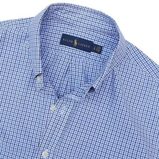 2010年代 ポロラルフローレン/プレイドB.Dシャツ ラルフローレンのアイコン的なアイテムのひとつである"ボタンダウンシャツ" サラッとライトなコットンブロード生地を採用。 ブルーxネイビーxホワイトの清涼感あるチェックパターン。 全体的に程よくゆとりのあるフィット。 素材:コットン100% ブロード ボタンダウンカラー カラー:ブルーxネイビーxホワイト コンディション:ユーズド/特に目立つダメージ無し 表記サイズ:L 胸囲 122cm/背丈 78cm/肩幅 46cm/袖丈 63cm 着用モデル身長:179cm その他ラルフローレンのシャツはこちらから