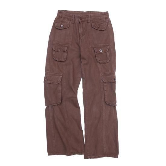 1990-00年代 ポケットデザインパンツ 足長効果で股上がやや浅めなストレートフィット。カジュアルなデザインだけどこのシルエットだからモダンな雰囲気が感じられてお気に入り。ほどよくコーディネートにクセをつけられるいい塩梅のパンツです( ◠‿◠ ) ブランド不明 素材:コットン75% x ポリエステル23% x スパンデックス2% カラー:ブラウン コンディション:ユーズド 表記サイズ:S 実寸サイズ:W27xL29 ウエスト 68cm/股上 26cm/ワタリ 26cm/レングス 73cm/裾幅 24cm/総丈 99cm 着用モデル身長:156cm <その他のパンツ、オールインワンはこちら>