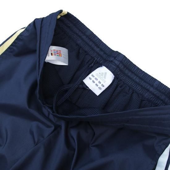 2002年製 アディダス/トラックパンツ 両サイドに色違いで1本のラインが入る、アディダスには珍しいデザインのトラックパンツ。後ろは二枚接ぎにすることでヒップにゆとりを持たせ、後ろ姿まで気の利いた仕様に。シャツやブラウス、革靴やヒールなんかとの相性も抜群ではないでしょうか。 表地:ポリエステル100% 裏地(膝下まで):ポリエステルメッシュ 裏地(膝下から):ポリエステル ウエストゴム+ドローコード 両サイド腰ポケット カラー:ダークネイビー コンディション:ユーズド 表記サイズ:S 実寸サイズ:W25-28 x L31 ウエスト 64-70cm/股上 25cm/ワタリ 29cm/レングス 78cm/裾幅 22.5cm/総丈 102.5cm 着用モデル身長:156cm <その他のパンツはこちら>