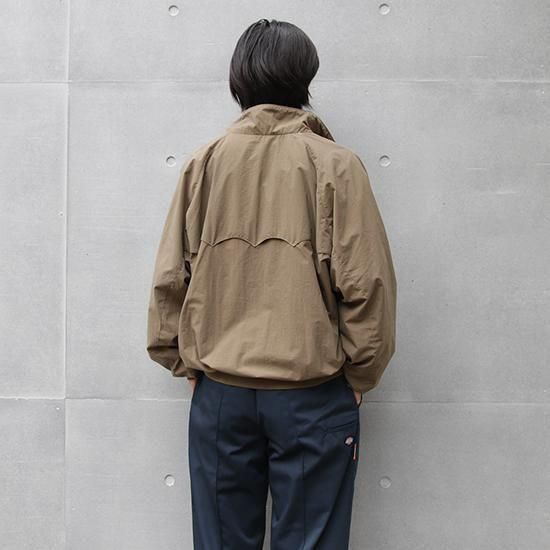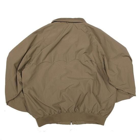 1990年代 チュッカーズ/ナイロンハリントンジャケット ドッグイヤーカラーが特徴のハリントンジャケット。 こちらは軽く速乾、耐久、暴風性に優れたナイロンシェルを採用。 ロゴの類も無く、シンプルな面構えは羽織ものとしての汎用性高く、 どんなスタイルにもフィットする1枚。 表地、裏地:ナイロン ドッグイヤーカラー、腰にフラップ付きポケット、袖崎・裾リブ カラー:コヨーテ コンディション:ユーズド *左袖上腕と前腕にヨゴレあり 表記サイズ:XL 胸囲 134cm/背丈 68cm/ゆき丈 94cm 着用モデル身長:179cm その他のジップジャケットはこちらから