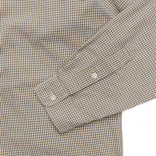 イエローxブルーxホワイトの爽やかな組み合わせ、スモールチェックなので使っている色の割に落ち着いた印象。