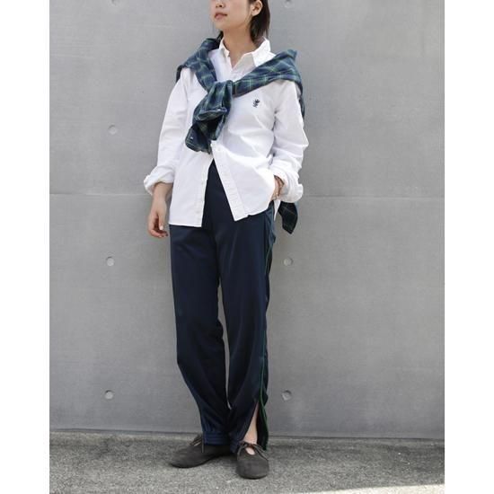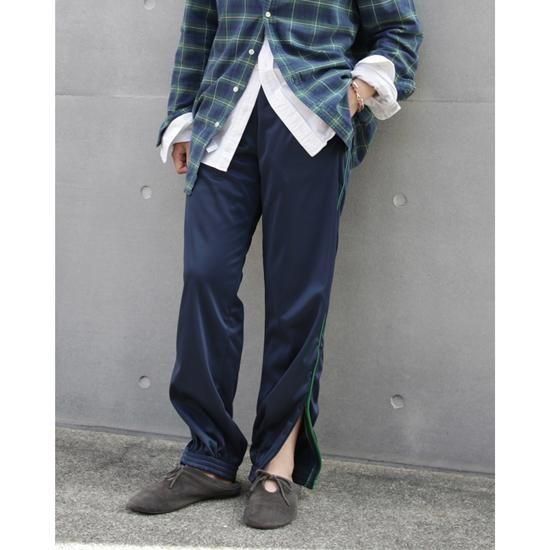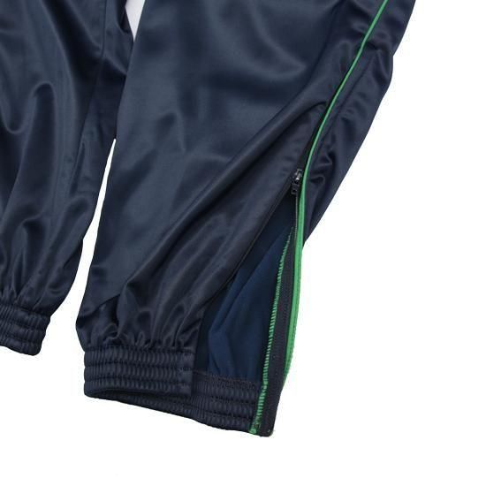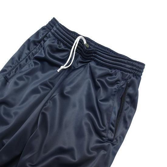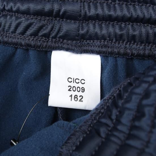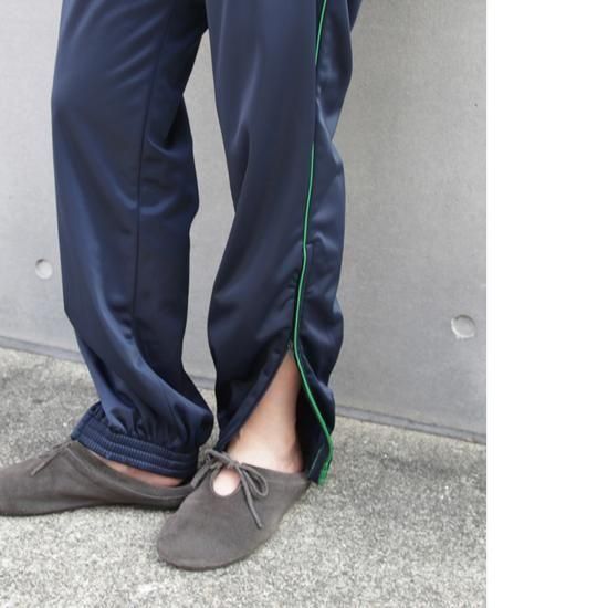 2009年製 フランス軍/フィジカルトレーニングパンツ フランス陸軍がトレーニングの際に着用するパンツ。この手のものには珍しい、サテンを思わせる艶やかな素材感と細いサイドラインが上品で、靴を履いたままでも着用を容易にするための膝下から裾のジップは、合わせる靴によってテーパード具合を変えられる嬉しい仕様。裏地は薄手の総フリース素材。 表地:ポリエステル 裏地:ポリエステルフリース ウエストゴム+ドローコード 腰の両サイドにジップポケット 膝下から裾に開閉可能なジップ カラー:ダークネイビーxグリーン コンディション:デッドストック 表記サイズ:162 実寸サイズ:W26-28 x L29 ウエスト 66-72cm/股上 28cm/ワタリ 32cm/レングス 73cm/裾幅 12cm/総丈 98cm 着用モデル身長:156cm <その他のパンツはこちら>