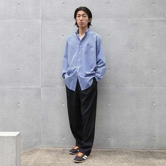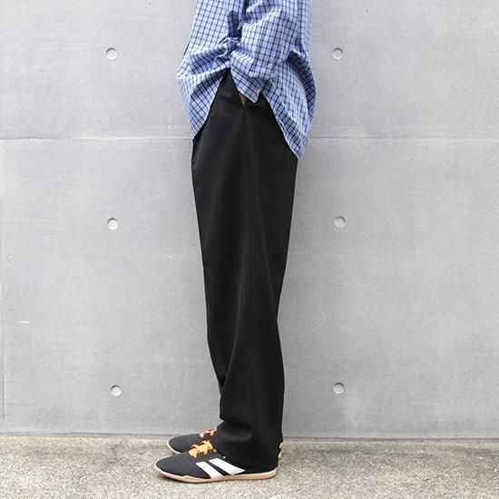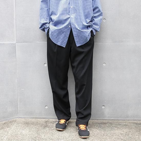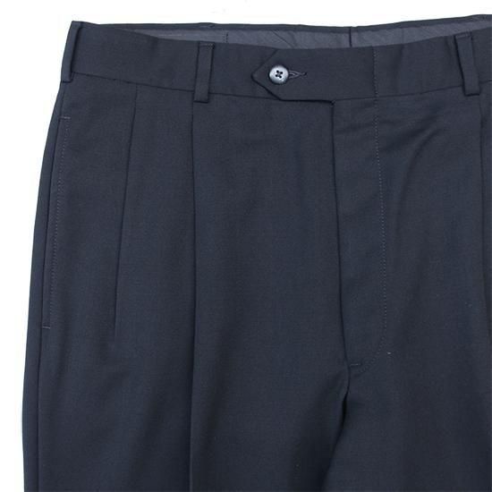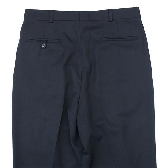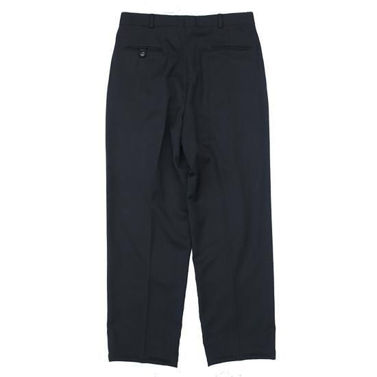 1990年代 ピエール・カルダン/2タックウールトラウザーズ サラッとしなやかドレープ感のあるウール100%のツイル生地は高級感もあり。 フロント2タックで腰回りにゆとり、裾に向かって緩やかにテーパードするリラックスフィット。 ブラック単色で何かと便利なスラックス。 素材:ウール100% ツイル 前身頃膝下まで裏地付き フロント2タック(アウトタック) カラー:ブラック コンディション:ユーズド/特に目立つダメージ無し 表記サイズ:W33 実寸サイズ:W33xL30 ウエスト 84cm/股上 29.5cm/ワタリ 30cm/レングス 76.5cm/裾幅 22cm/総丈 105cm 着用モデル身長:179cm その他のトラウザーズはこちらから