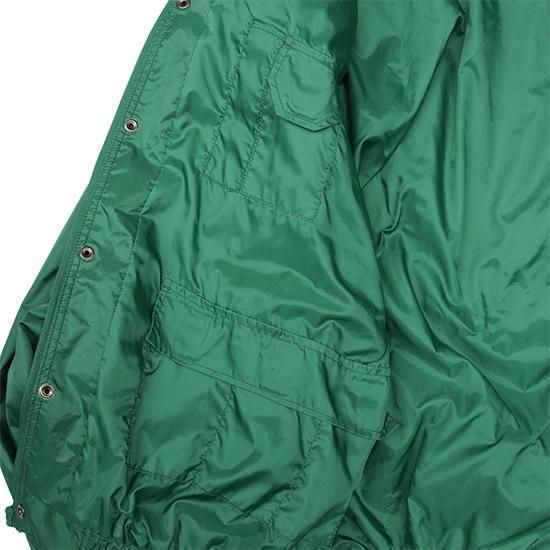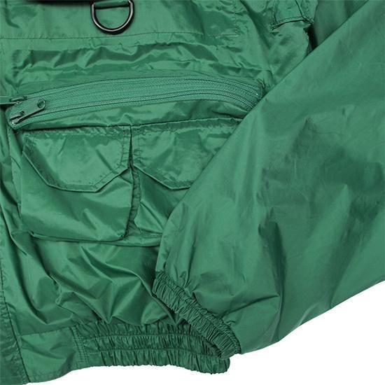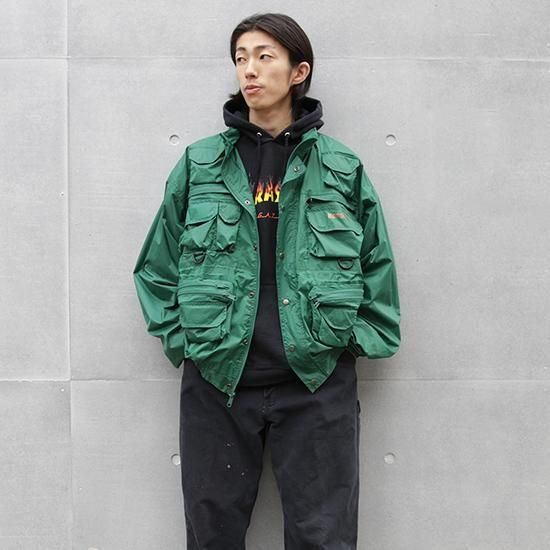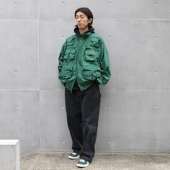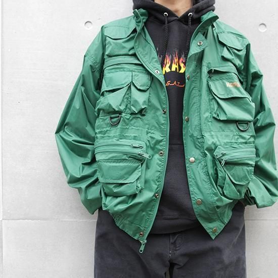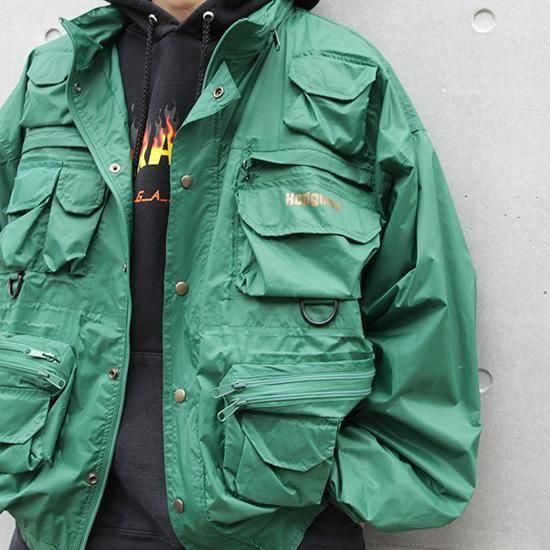 1990年代 ホッジマン/ナイロンフィッシングジャケット 1838年創業の老舗のフィッシングウェアメーカー"Hodgman/ホッジマン" フロント、バック、内側に付いた多数の機能的なポケットが特徴であり魅力のフィッシングジャケット。 素材はナイロン、サイズは2XLのビッグサイズ。 ポケットの機能性を使い切れるかはその人次第ですがw そんな事は置いといて、ポケットの仕様はデザインとして最高にかっこいいし、オーバースペックなアイテムに男は憧れるのです。 表地:ナイロン 襟にフード内蔵 カラー:グリーン コンディション:ユーズド/特に目立つダメージ無し *第3ボタンがちょっと固めですが、使用には問題ありません 表記サイズ:XXL 胸囲 147cm/背丈 70cm/肩幅 63cm/袖丈 70cm 着用モデル身長:176cm その他のアウトドアジャケットはこちらから