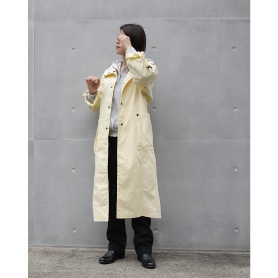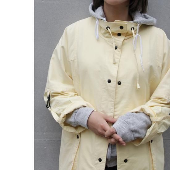 1980-90年代 Sport Crest by Utex/スタンドカラーコート 立てても寝かせても顔周りを華やかにする高い襟、一気にリラックスした雰囲気にもっていくドルマンスリーブは捲るとさらに可愛い仕様。後身頃までかかる大きなマチ付ポケット、そしてなにより綺麗すぎるこのレモンイエロー。素敵なディテールが詰まったユーロブランドならではの一着、最高です。 表地:コットン 裏地:ポリエステル ルーマニア製 スタンドカラー、襟にドローコード ドルマンスリーブ、袖の内側にストラップ 腰ポケット カラー:レモンイエロー コンディション:ユーズド *右肩後ろに薄い汚れ *ポケット付近に点状のシミ 表記サイズ:3/4 (実寸Women's M-Lサイズ位) 胸囲 104cm/背丈 114cm/ゆき丈 78cm 着用モデル身長:156cm <その他のジャケットはこちら>