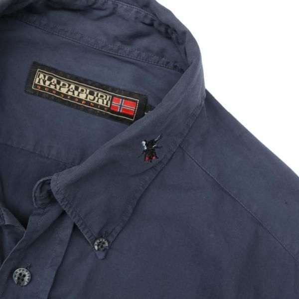 Aoi Industry for Props Store Annex "AP" 2000s- Napapijri Cotton Field Shirt 高いデザイン力と細部まで超精密な刺繍で表現する技術力で世界に知られる葵産業/Aoi Industoryとのコラボレーションコレクション。 アウトドア、アメリカントラッド、ワークウェアなど異なるジャンルから選び抜いたヴィンテージウェアに対し、腹側から見た蝿をそれぞれの個体に合わせて色、場所、個数を変えて刺繍しています。 1987年、イタリアでアウトドアブランドとして誕生した<ナパピリ>。 大きくブランドロゴを配したアノラックなどが非常に有名ですが、ブランディングを控えたウェアも非常にユニークです。 刺繍:襟 x1、腹部 x1 素材:コットンタイプライター カラー:ネイビー コンディション:ユーズド/特に目立つダメージなし 表記サイズ:L 胸囲 126cm/背丈 81cm/肩幅 52cm/袖丈 65cm モデル身長 179cm 【AP Aoi Industry x Props Store Annexのコレクションはこちらから】