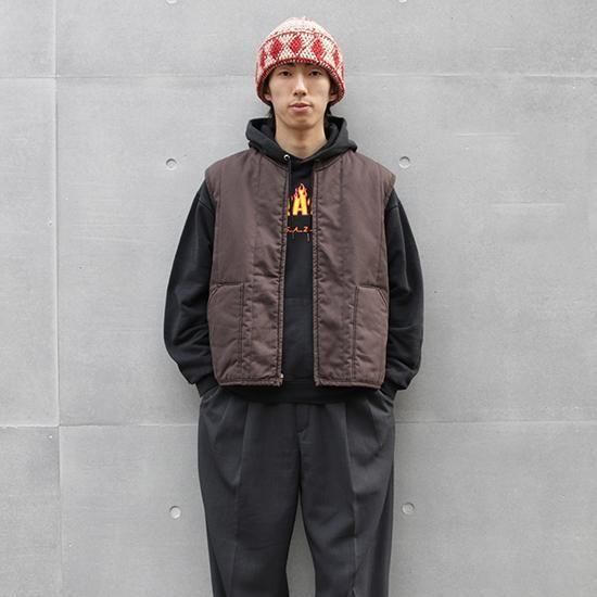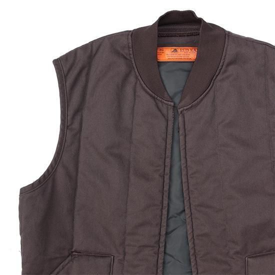 1990年代 レッドキャップ/ワークベスト アメリカ製 アメリカの老舗ワークウェアブランド"レッドキャップ" 表はワークアイテムと言えばのポリコットンツイルx裏は保温性高く滑りの良い中綿入ナイロン縦キルティング。 なんだかんだ嬉しいアメリカ製。 素材:ポリエステル47%xコットン20%xポリウレタン20%xナイロン13% カラー:ブラウン コンディション:ユーズド *背中中央右側に小穴あり 表記サイズ:L 胸囲 120cm/背丈 69cm/肩幅 46cm 着用モデル身長:179cm その他のワークジャケットはこちらから