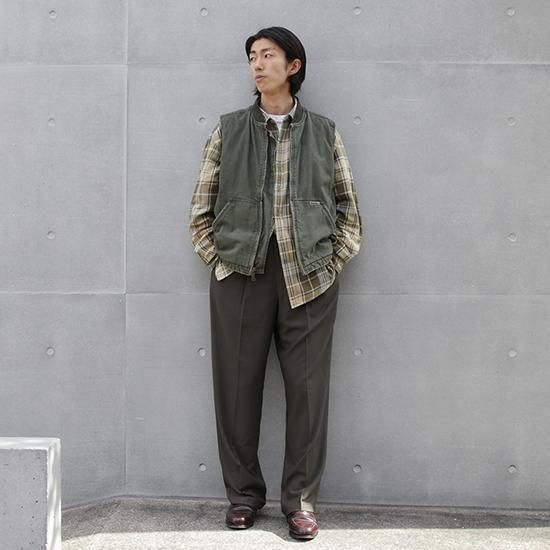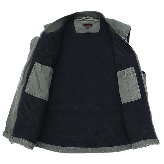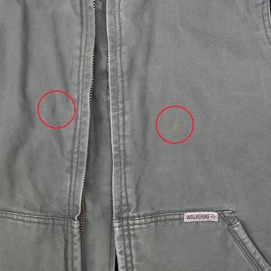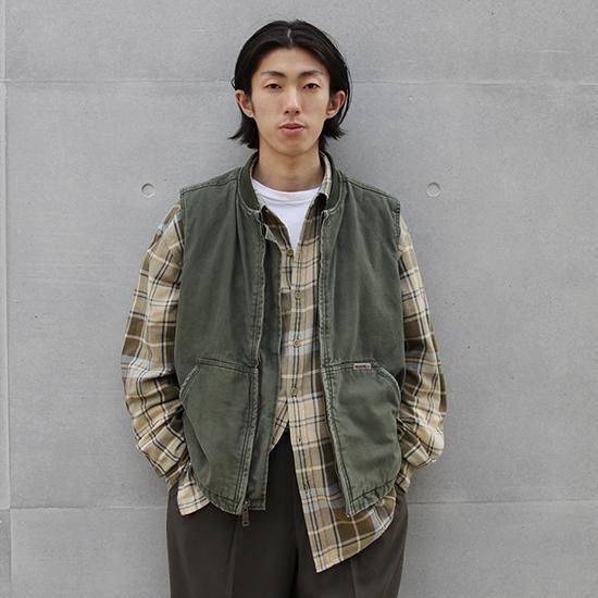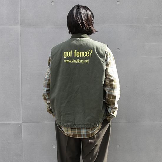 2000年代 ウルヴァリン/ワークベスト アメリカ製 アメリカの老舗ワークブランド"ウルヴァリン" ブーツのイメージが強いですがウェアの方もしっかり作ってます。 表はワークアイテムと言えばのコットンダックx裏は保温性に優れた中綿入フリースキルティング。 "got milk?"パロディの"got fence?/フェンスある?"のバックプリントが最高。 表地:コットンダック 裏地:ポリエステルフリース 中綿:ポリエステル カラー:オリーブ コンディション:ユーズド *退色、薄汚れあり *右前身頃裏地首下ジップ脇焦げ跡あり 表記サイズ:L 胸囲 120cm/背丈 68cm/肩幅 43cm 着用モデル身長:179cm その他のワークジャケットはこちらから