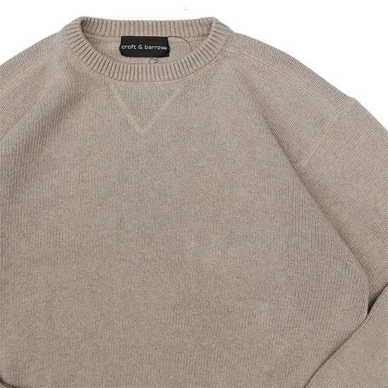 春や秋に特に使い勝手の良いクルーネックのコットンセーター。