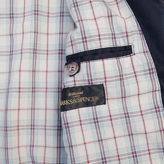 1990年代 セントマイケル by マークス&スペンサー/ジップブルゾン イギリスのデパートメントストア"マークス&スペンサー"のPB"セントマイケル"のジップブルゾン。 シングルジップのシンプルなデザイン、ダークネイビーの色目はシックで上品な印象。 ゆとりのあるフィットでレイヤードしやすく合わせる物を選ばない汎用性の高い一枚です。 表地:コットン55%xポリエステル45% ツイル 裏地:ポリエステル65%xコットン35% 袖裏:ポリエステル ラグランスリーブ、腰ポケット、内ポケットx1、 カラー:ダークネイビー コンディション:ユーズド *腹にうっすら白く色抜け部分あり 表記サイズ:L 胸囲 134cm/背丈 72cm/裄丈 91cm 着用モデル身長:179cm その他のジップブルゾンはこちらから