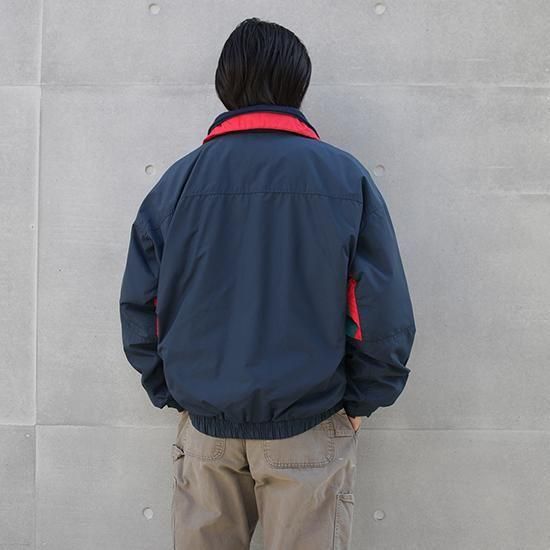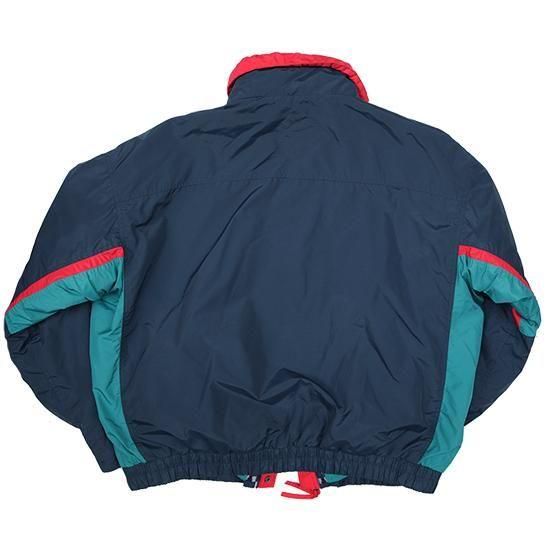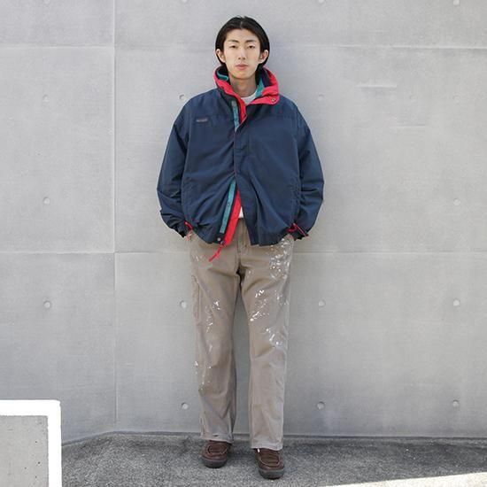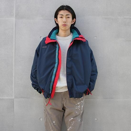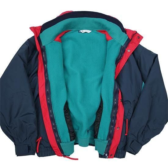 1993年製 コロンビアスポーツウェア "バガブー" ナイロンシェルxフリースジャケット 3in1インターチェンジジャケット コロンビアが86年にリリースした3イン1インターチェンジジャケットの元祖"バガブー" シェルと着脱可能なライナーによりシェルxライナー、シェル単体、ライナー単体と3通りの着方が選べる3イン1ジャケット。 脇下にガゼット的なパネルを用い腕周りの可動域を広げ運動性を向上したコロンビア独自の"ラディアルスリーブ"を搭載したモデルでもあります。 こちらは93年リリースのオールドモデル、ネイビーベースにレッドxティールのシェルにティールカラーのフリースライナーはコロンビアシグネチャーなキレキレ配色。 単体のデザイン、機能的にも優れたジャケットとフリースジャケットがセットで正直お買い得です◎ カラー:ネイビー コンディション:ユーズド/特に目立つダメージ無し (シェル) 表地・裏地:ナイロン 腰ジップポケット、内ポケットx1、袖先ベルクロアジャスター (ライナー) アメリカ製 素材:ポリエステルフリース 袖裏:ポリエステル 腰ジップポケット 表記サイズ:XL 胸囲 150cm/背丈 70cm/肩幅 67cm/袖丈 62cm/ゆき丈 98cm 着用モデル身長:179cm その他のコロンビアの商品はこちらから