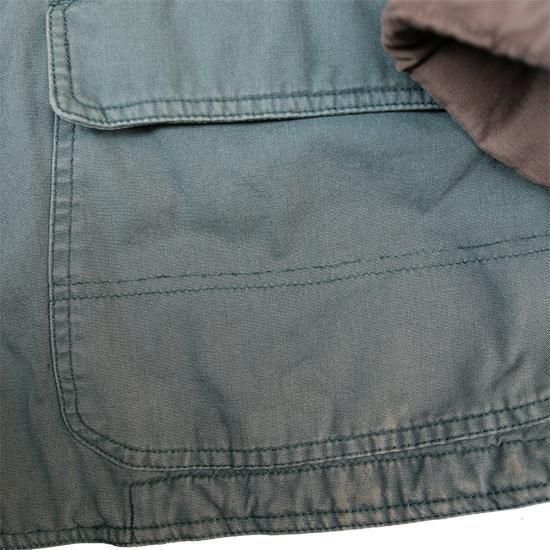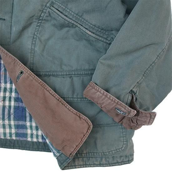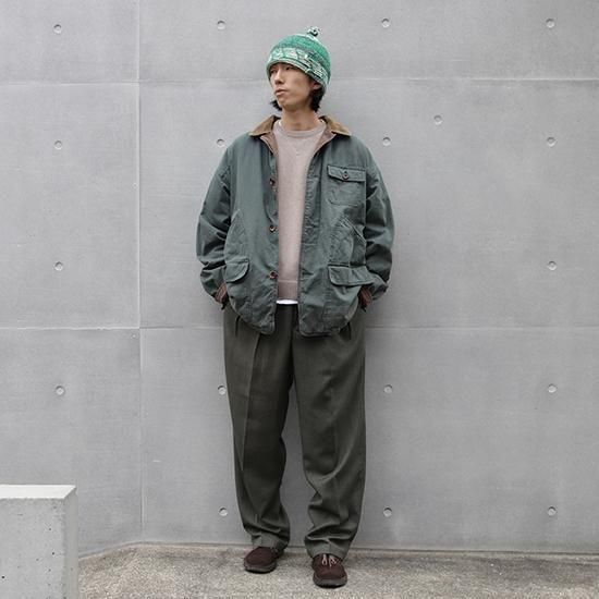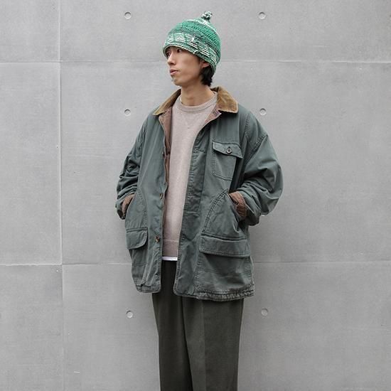 1990年代 ハイシエラ/キルトラインドフィールドコート タフでエイジングを楽しめるコットンキャンバスシェルに裏は保温性の高いフランネルキルティング。 全体にフェードとステッチのパッカリングの具合が最高。 古着らしく小慣れた雰囲気で◎ ちょっときれい目なハイゲージニットやスラックスなんかと合わせても楽しそうなアイテムです。 表地:コットンキャンバス 裏地:コットンフランネル 袖裏:ナイロン 中綿:ポリエステル 襟:コットンコーデュロイ 内ポケットx2 カラー:フォレストグリーン コンディション:ユーズド *全体にフェード、左前身頃第3ボタン近くと左ポケット口に薄ヨゴレあり *右前身頃裏地リペアあり 表記サイズ:L 胸囲 145cm/背丈 80cm/肩幅 61cm/袖丈 60cm 着用モデル身長:179cm その他のコートはこちらから