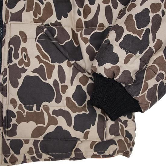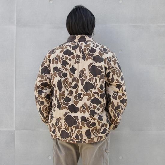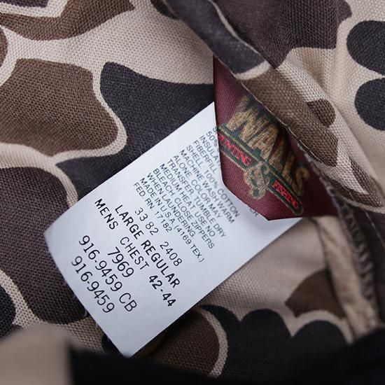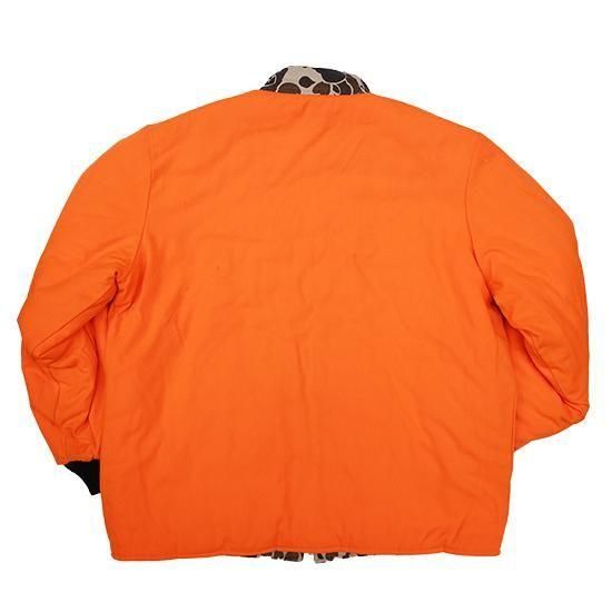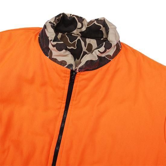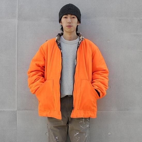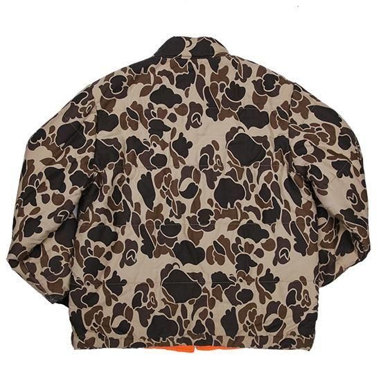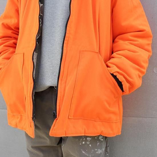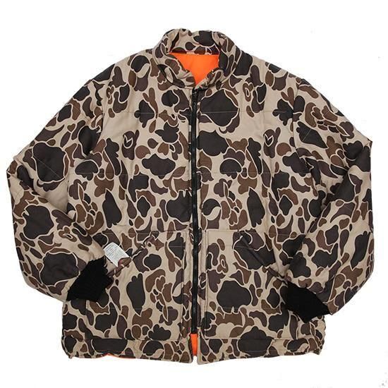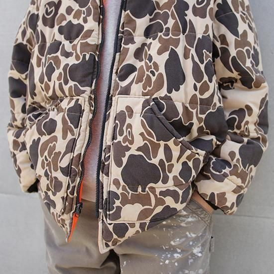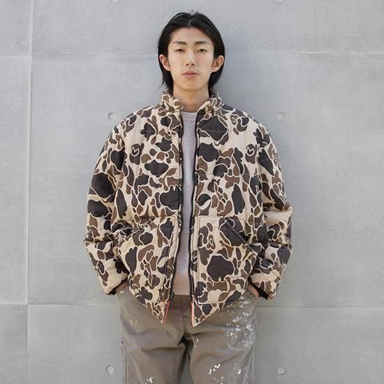 1990年代 ウォールズ/リバーシブルキルティングジャケット アメリカ製 アメリカの老舗ワークウェアブランド"ウォールズ" ハンティング仕様のダックハンターカモxハンターオレンジのリバーシブル。 生地は軽めでしっかり入った中綿、見た目ほどの重さは無く軽い着心地。 やっぱりうれしいアメリカ製。 (ダックハンターカモ面) 素材:コットンキャンバス (オレンジ面) 素材:コットン50%xポリエステル50% 中綿:ポリエステル 腰ポケット、袖先リブ カラー:ブラウンダックハンターカモxオレンジ コンディション:ユーズド *オレンジ面に薄ヨゴレあり 表記サイズ:L 胸囲 132cm/背丈 74cm/肩幅 52cm/袖丈 66cm 着用モデル身長:179cm その他のワークジャケットはこちらから