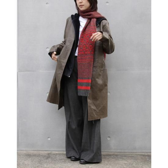 2000-10年代 ギャップ/ウールニットマフラー 余裕でぐるぐる巻きもできる全長205cm、垂れ流してもいいかんじの長さ☝️チャコールxレッドの配色でデザインが所々ちがうのが可愛すぎる、マフラーなんていくらでも欲しい〜😌 素材:ウール78% x ナイロン22% 長さ 205cm x 幅 25cm カラー:チャコールxレッド コンディション:ユーズド 着用モデル身長:156cm <その他のアクセサリーはこちら>