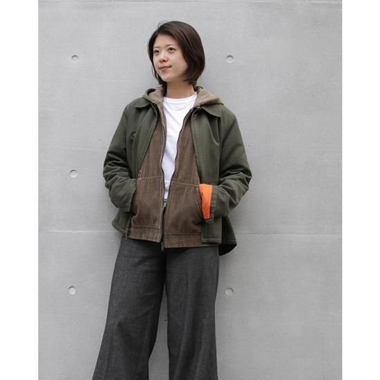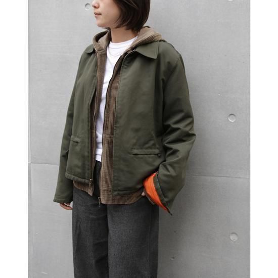 2000年代 ギャップ/キルトラインドワークジャケット 一見シンプルなワークジャケットなんですが、細かい部分がかなり良い。パッと目を惹くのが袖先の仕様で、ジップの開閉によりチラリするオレンジがいい仕事をしてるし、インナーの袖先のたまりも逃してくれるという実用性もあります。遊び心なのか腰ポケットのストラップはなぜか右側だけ。ほんで裏のキルティングは細縦で配色も抜群です。また後ろ裾だけちょっと長いのがワークみを感じさせてくれます。こういうのって肩が張りがちでゴツくみえやすいのにそれもないし、サイズ感も良好。紐解くと内容が詰まってるけど、一見シンプルってのが私的にクールです😌 表地:ポリエステル90% x ナイロン10% 裏地:ナイロン100% 中綿:ポリエステル100% 腰ポケット、袖先がジップで開閉可能 内ポケットx1 カラー:ダークオリーブ コンディション:ユーズド 表記サイズ:Women's M 胸囲 108cm/背丈 64cm/肩幅 42cm/袖丈 61cm 着用モデル身長:156cm <その他のジャケットはこちらから>