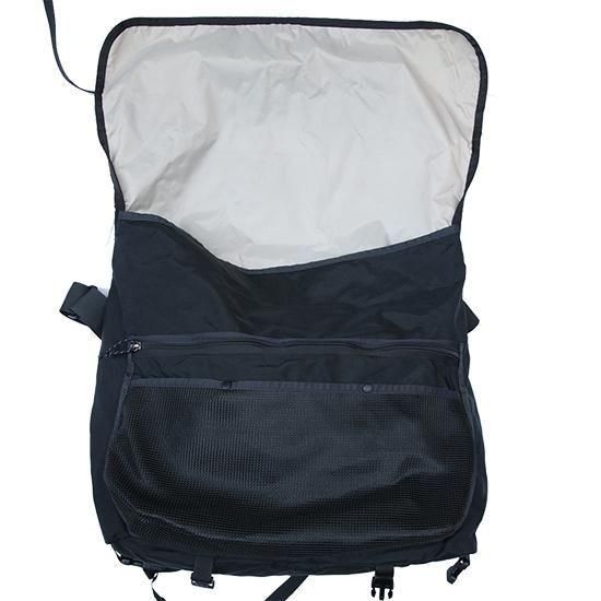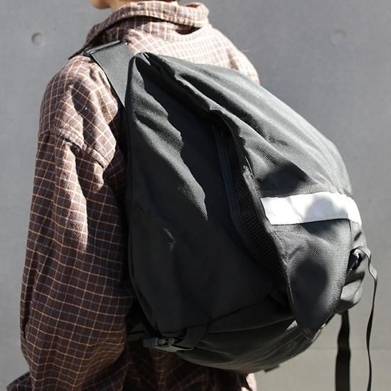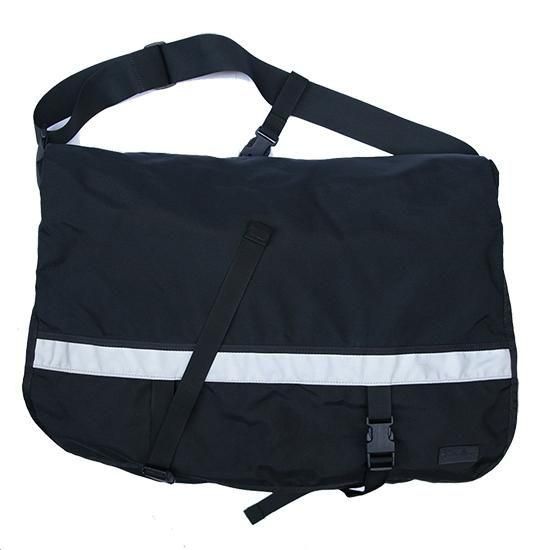 1996s Patagonia/Courier Bag 非常に大きなサイズのクーリエ=メッセンジャーバッグで、その後のハーフマスなどに繋がっていく起源的なモデル。 バリスティックナイロンのシェルにあえて?ターポリンを用いなかった点やメッシュ使い、グログランテープ+スナップボタンなど各所にパタゴニアらしい仕様が組み込まれています。 大きなサイズの割に軽量なのも特異なポイントです。 表地:ナイロン 裏地:ナイロン カラー:ブラック コンディション:ユーズド/使用感の少ない個体です。 ・左右両がけ ・アンチスイングストラップ ・エクステリアポケットx2 ・1996年アメリカ製(ITWネクサスのバックルは95年製) 実寸サイズ:上辺横幅 55cm 底面部横幅 55cm 底マチ 21cm 高さ 41cm 着用モデル身長:179cm その他のメッセンジャーバッグはこちらから