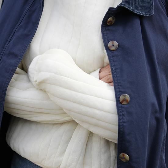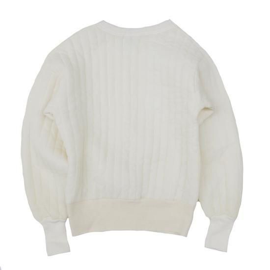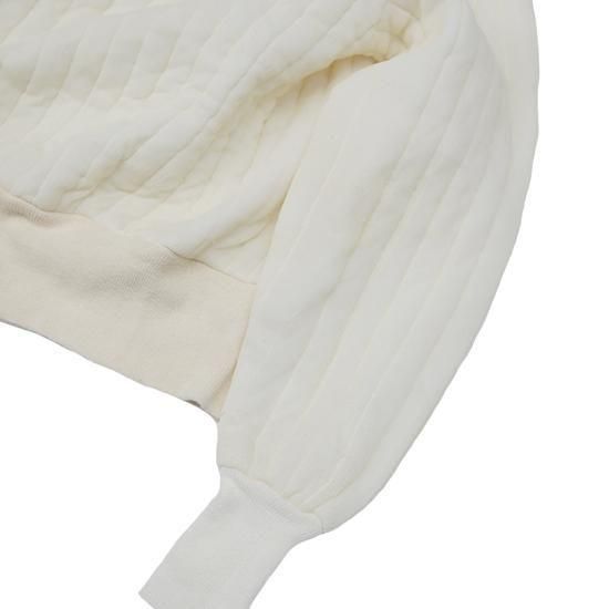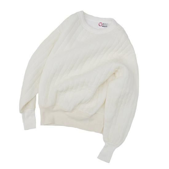 1980-90年代 Sports Afield/キルトクルースウェット 軽い中綿入り、縦キルティングのスウェット型トップス。袖先と裾のリブが長めなのが可愛いし、柔らかく、さほどボリューミーではないのでアウターにも響きにくい☝️セーターやスウェットとはまた違った楽しさがあります✨ 表地:ナイロン 裏地:ポリエステル 中綿:ポリエステル アメリカ製 カラー:ナチュラル コンディション:ユーズド *所々にステッチ飛びや傷が見られます。 *ダメージのある商品です、古着の特長としてご理解いただけない方はご購入をお控え下さい。 表記サイズ:XL (実寸 Women's Mサイズ) 胸囲 96cm/背丈 57cm/肩幅 47cm/袖丈 56cm <その他のスウェットはこちら> <コーディネートで使用したアイテム> *フィールドコート