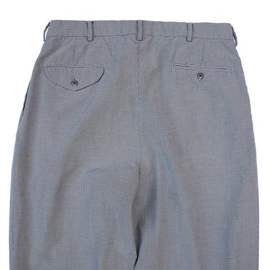 1990年代 ポロラルフローレン/2タックトラウザーズ しなやかで柔らかなテンセルxコットン生地を採用。 遠目からはグレー単色に見える細かなブラックxホワイトのハウンドトゥース(千鳥格子)柄。 フロント2タックで全体にゆとりあるリラックスフィット。 素材:テンセル60%x コットン40% フロント2タック(インタック)、ジップフライ カラー:ブラックxホワイト ハウンドトゥース コンディション:ユーズド/特に目立つ傷や汚れ無し 表記サイズ:W34xL30 実寸サイズ:W33xL29 ウエスト 84cm/股上 31cm/ワタリ 33cm/レングス 74cm/裾幅 21.5cm/総丈 105cm 着用モデル身長:179cm その他ラルフローレンのアイテムはこちらから