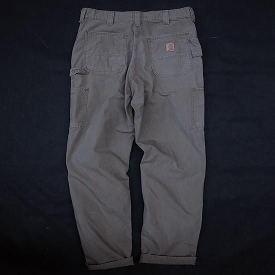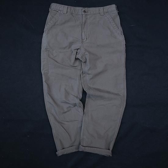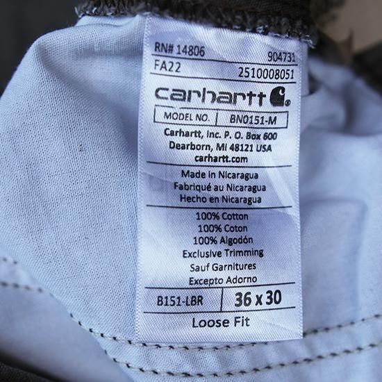 2020年代 カーハート/B151 キャンバスワークパンツ カーハートの定番モデルB11のライトオンスバージョンB151。 ワークパンツらしい太めのストレートフィット。 履き込むほどに生まれるパッカリングと退色の具合が魅力の一本です。 素材:コットンキャンバス 7.5oz ジッパーフライ、ツールポケット、ハンマーループ コンディション:ユーズド/特に目立つダメージ無し 着用モデル身長:179cm < LBR/ライトブラウン> 表記サイズ:W36×L30 実寸サイズ:W35xL29 ウエスト 90cm/股上 32cm/ワタリ 32cm/レングス 74cm/裾幅 23cm/総丈 105cm ニカラグア製 その他のカーハートのアイテムはこちらから