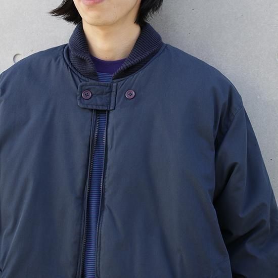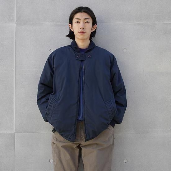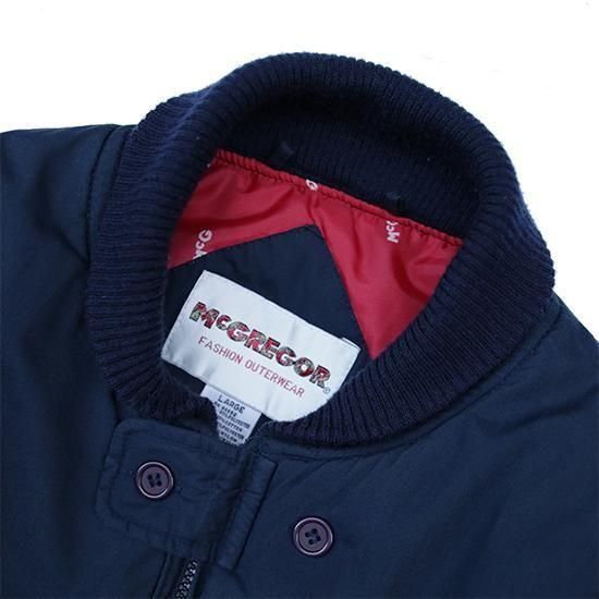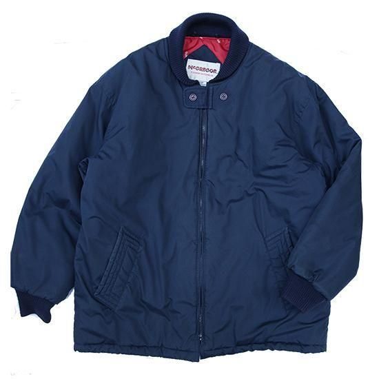 1980-90年代 マクレガー/キルトラインドファラオジャケット リブヘチマ襟、袖リブ、裾リブ無し着丈長めが特徴のファラオジャケット。 軽く耐久性の高いポリxコットンシェルに裏は保温性の高い中綿キルティングの組み合わせ。 ネイビーxレッドの鉄板配色。 ビンテージスタイルですがデイリーに着やすくアップデートされた1枚。 表地:ポリエステル65%xコットン35% 裏地:ナイロン 中綿:ポリエステル カラー:ネイビーxレッド コンディション:ユーズド/特に目立つダメージ無し 表記サイズ:L 胸囲 128cm/背丈 75cm/肩幅 56cm/袖丈 60cm 着用モデル身長:179cm その他のワークウェアはこちらから