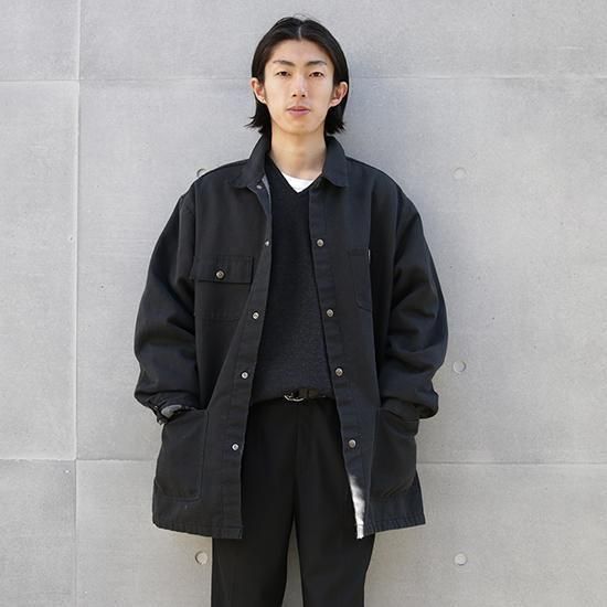 1990年代 ベンデイビス/ブランケットラインドツイルチョアコート(カバーオール) アメリカ製 日本ではカバーオールでお馴染み"Chore Coat/チョアコート"。 こちらはいまやカーハートよりレアなんじゃないでしょうかのベンデイビスの1枚。 表地はパンツでお馴染みのツイルx裏はブランケット仕様。 ブラック単色でXXLのビッグサイズはハーフコート感覚で着てみてはいかがでしょう。 オススメです。 素材表記無し 表地:コットンxポリエステル ツイル 裏地:アクリルxポリエステルブランケット 内ポケットx1 カラー:ブラック コンディション:ユーズド *背中右裾側に小キズあり 表記サイズ:XXL 胸囲 136cm/背丈 85cm/肩幅 55cm/袖丈 67cm 着用モデル身長:179cm その他のカーハート/ジャケットはこちら