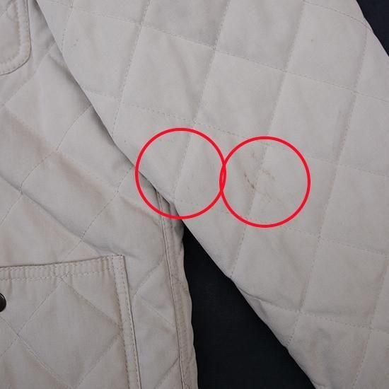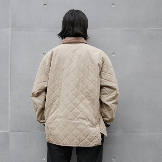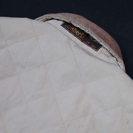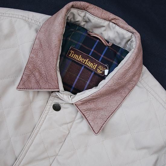 1990s Timberland ティンバーランド/キルティングジャケット バブアーやラベンハムのキルティングジャケットにUSのカバーオール、フィールドコート的要素を注入した感じ?と言うんでしょうか。 その辺にありそうで無い、この当時のティンバーでしか出せないムードが魅力の1枚。 ライトタンの柔らかな色目も魅力。 素材表記無し 表地:コットンxナイロン 裏地:コットンxポリエステル 袖裏:ナイロン 中綿:ポリエステル 左胸ポケット、腰ポケット、内ポケットx1、裾サイドスリッド カラー:ライトタン コンディション:ユーズド *左腰ポケット、左袖中央内側、背中右肩に小さなヨゴレあり 表記サイズ:M 胸囲 118cm/背丈 78cm/肩幅 54cm/袖丈 61cm 着用モデル身長:179cm その他のティンバーランドのアイテムはこちらから