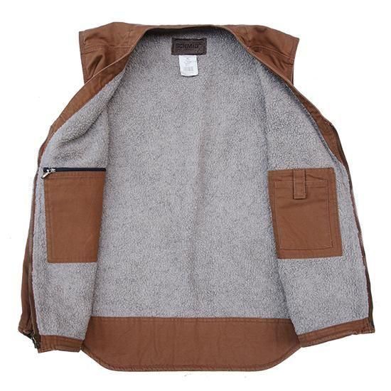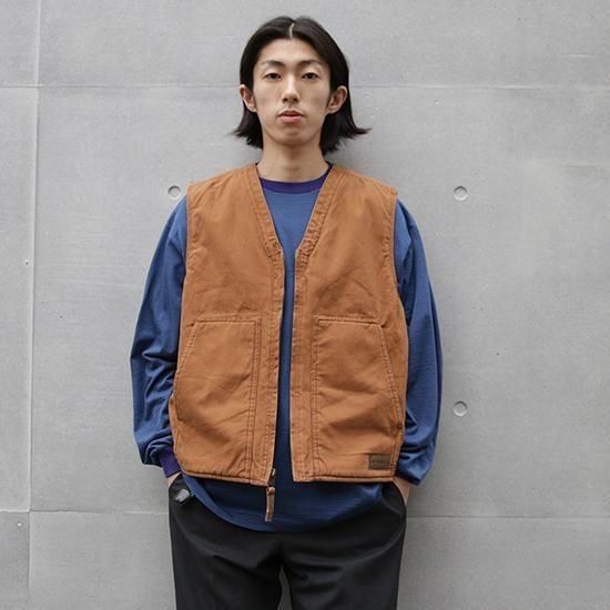 2000年代 シュミット/ボアラインドダックワークベスト 表はタフなコットンダックキャンバスx裏は保温性高いボアフリースの組み合わせ。 襟にリブ等つかずスッキリとした印象。 単体ではもちろんアウターの下にレイヤードとして挟むのも良さそう◎ 表地:ダックコットンキャンバス 裏地:ポリエステルボアフリース 腰ポケット、内ポケットx3室 カラー:ブラウン コンディション:ユーズド/特に目立つダメージ無し 表記サイズ:M 胸囲 116cm/背丈 67cm/肩幅 43cm 着用モデル身長:179cm その他のワークジャケットはこちらから