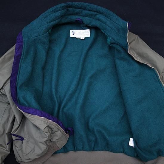 1993年製 コロンビアスポーツウェア/フリースラインドナイロンジャケット アネックス冬の定番であるコロンビアのナイロンxフリース一体型立襟ジャケット。 シェルにナイロン、身頃裏地にポリエステルフリース、袖中綿にポリエステルを使用することでシンプルな見た目ながら高い運動性と保温性を両立させたコロンビアの定番モデル。 93年リリースのオールドモデルで、コロンビアらしいドリジナル配色が最高です。 表地:ナイロン 裏地:ポリエステルフリース 袖裏:ナイロン 袖中綿:ポリエステル 腰にジップポケット、袖先・裾リブ カラー:オリーブカーキxパープルxグリーン コンディション:ユーズド/特に目立つダメージ無し 表記サイズ:XL 胸囲 142cm/背丈 65cm/ゆき丈 93cm 着用モデル身長:179cm その他のコロンビアのアイテムはこちらから