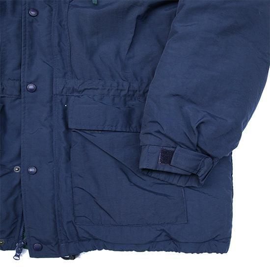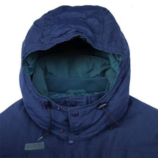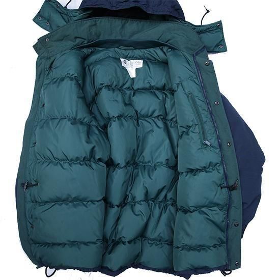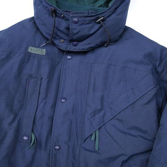 1994年製 コロンビアスポーツウェア/ダウンマウンテンパーカ 94年オールドコロンビアのマンパスタイルのダウンパーカ。 ナイロンxダウンで撥水、防風性と軽量で高い保温性を一体にしたレイヤード入らずの1枚完結型ジャケット。 ネイビーxグリーンのクラシックな配色はコーディネートしやすくて◎ 94年のモデルで30年以上経過していますがダウンもふかふか、全体的に状態良好、オススメです。 表地:ナイロン 裏地:ナイロン 中綿:ダウン フロントダブルジップ、フード・ウエスト・裾にドローコード、袖先ベルクロアジャスター 内ポケットx1、両胸にジップポケット、腰2口ポケット カラー:ネイビー コンディション:ユーズド *あご下裏地に薄ヨゴレあり 表記サイズ:L 胸囲 140cm/背丈 82cm/肩幅 65cm/袖丈 57cm/ゆき丈 93cm 着用モデル身長:179cm その他のコロンビアのアイテムはこちらから