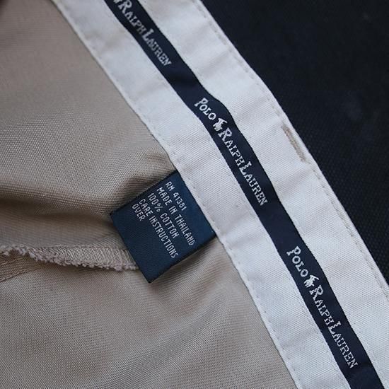 2000年代 ポロラルフローレン/2タックチノトラウザーズ ラルフさん定番のポロチノ。 こちらは合わせやすさと形の良さで人気の高い"アンドリューフィット" フロント2タックでゆとりのある腰-ヒップ周りから裾に向かってナチュラルなテーパードのリラックスしたフィット。 中厚で柔らかなコットンツイル生地で仕立てられ、カジュアルはもちろん少し品のある着こなしができる一本。 素材:コットンチノツイル フロント2タック(インタック)、ジップフライ カラー:カーキ コンディション:ユーズド/状態良好です 表記サイズ:W38xL30 実寸サイズ:W37xL30 ウエスト 94cm/股上 32cm/ワタリ 34cm/レングス 75cm/裾幅 23cm/総丈 106cm その他ラルフローレンのアイテムはこちらから