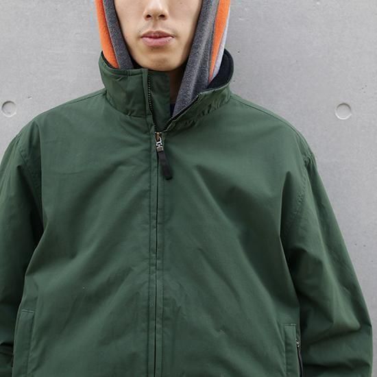 2000年代 エディーバウアー/フリースラインドナイロンジャケット アウトドアメーカーの多くが作り続けるナイロンxフリースジャケット。 こちらはバウアーの1枚で、ナイロンxフリースの一体型で袖には中綿の入った保温性に優れたモデル。 シェルとフリースをいちいちレイヤードするの面倒って方には是非オススメしたい1枚w シンプルなデザイン、高い機能性、ゆとりのあるフィットとバランスのとれた使い勝手の良いジャケットです。 珍しく胸にロゴ刺繍の入らないソリッド使用。 表地:ナイロン 裏地:ポリエステルフリース 袖裏:ナイロン 袖中綿:ポリオルフェンxポリエステル 襟内側リブ、腰にジップポケット、内ポケットx1 カラー:グリーン コンディション:ユーズド/特に目立つダメージ無し 表記サイズ:L 胸囲 124cm/背丈 67cm/肩幅 53cm/袖丈 62.5cm 着用モデル身長:179cm その他のアウトドアジャケットはこちらから