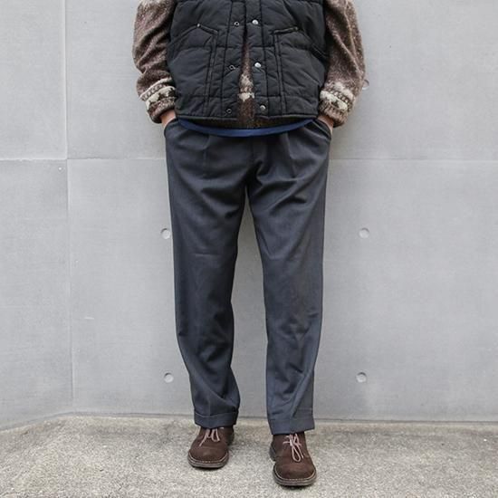 1990-00年代 ジョスエーバンク/2タックシルクブレンドウールトラウザーズ 創業は1905年と歴史あるアメリカのスーツ、カジュアルドレスを得意とする紳士服ブランド"Jos.A.Bank/ジョスエーバンク" こちらはウール90%xシルク10%のとろっとしなやで柔らかな肌触りの高級感ある生地を使った2タックトラウザーズ 。 フロント2タックで腰ヒップ周りにゆとりを持たせてからの裾に向かってテーパードのキレイなシルエット。 素材:ウール90%xシルク10% フロント2タック(アウトタック)、裾ダブル カラー:チャコール コンディション:ユーズド/特に目立つダメージ無し 表記サイズ:W34 実寸サイズ:W34xL29 ウエスト 87cm/股上 30cm/ワタリ 32cm/レングス 74cm/裾幅 22cm/総丈 101cm 着用モデル身長:179cm その他のトラウザーズはこちらから